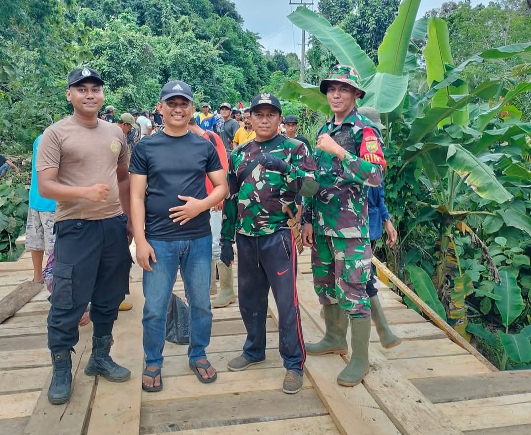 Kepala Desa Tanjung Aur dan Warga Kompak Memperbaiki Jembatan Rusak dengan Swadaya